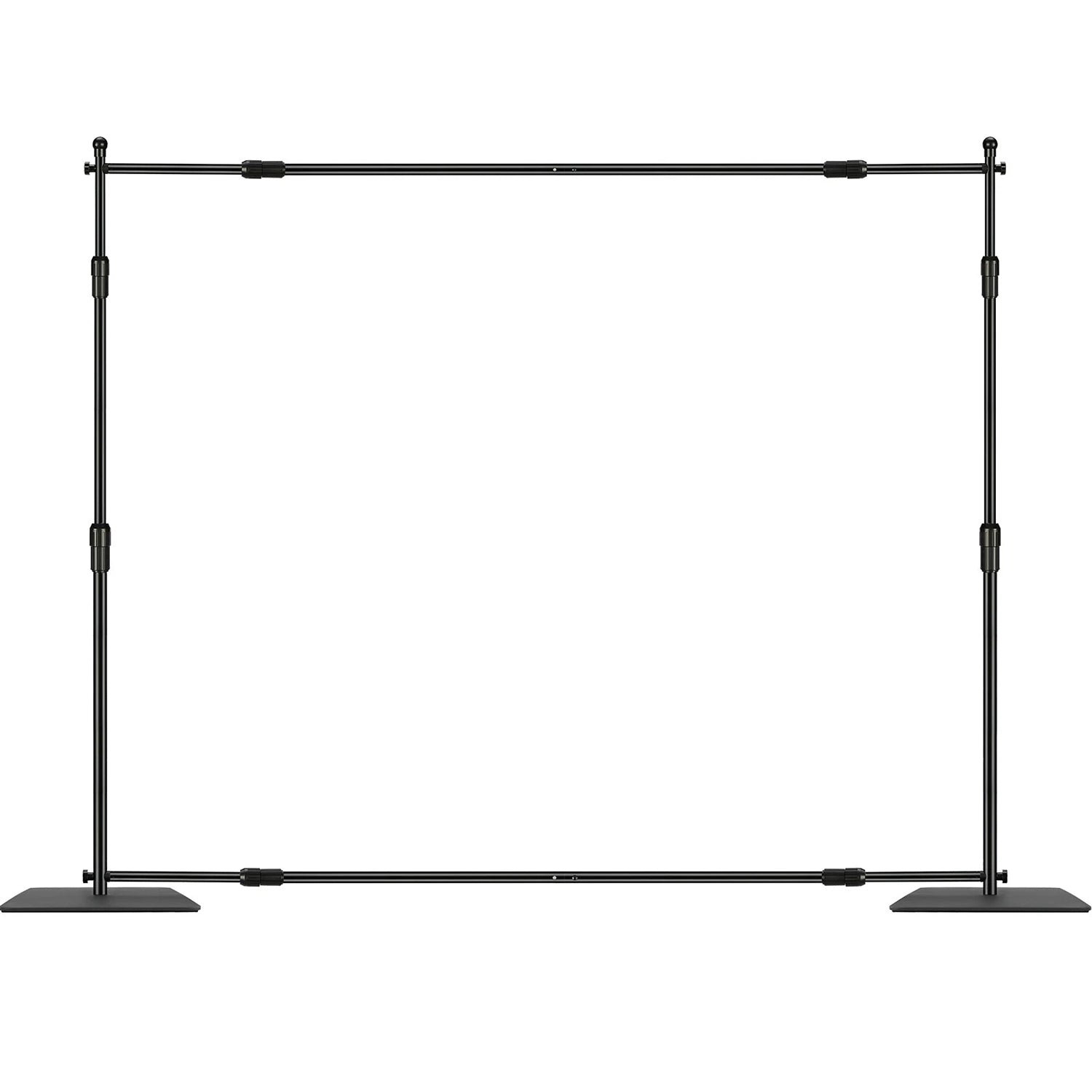 This slender foot base backdrop stand kit is a perfect display solution when you need a stand to hold a large size banner or need a professional presentation to show off your company. Our banner stand is easily set up for photo booth background, trade shows, media events, and more. A durable and lightweight aluminum frame is designed for frequent use. Adjustable height and width allow the heavy duty backdrop stand to fit banners in different sizes.